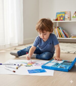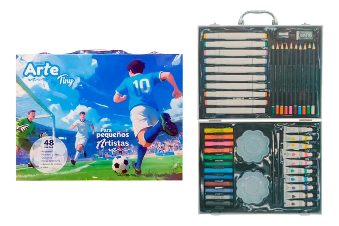 Presentado en un estuche tipo valija con diseño full color e ilustraciones, este set se convierte en el compañero ideal para dibujar, pintar o hacer manualidades en casa o en la escuela.