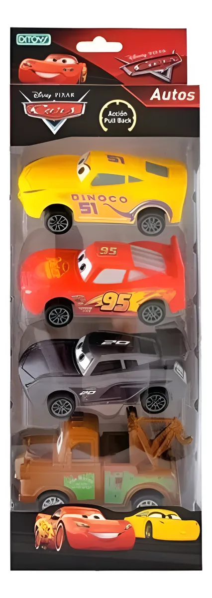 Caja Blister X 4 Autitos Pull Back Rayo Mcqueen Mate Dinoco Storm-Ditoys