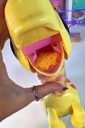 El peluche canta melodías alegres y baila con movimientos tiernos que entretienen a los niños y estimulan la memoria auditiva y el juego activo. ¡Habilidad de Sorpresa! El juego incluye una función interactiva y cómica: al alimentarlo o presionarlo (según el modelo), Gilbert realiza una divertida función de «hacer caca» (generalmente con un slime o masa de modelar especial), lo que añade un elemento de sorpresa y humor al juego de cuidado. Responde al Tacto: El peluche es suave y está diseñado para responder a los mimos y el toque de los niños, fomentando el afecto y la interacción emocional. Diseño Tierno: Gilbert tiene un diseño adorable, con su largo cuello y colores brillantes, ideal para abrazar y llevar a todas partes.