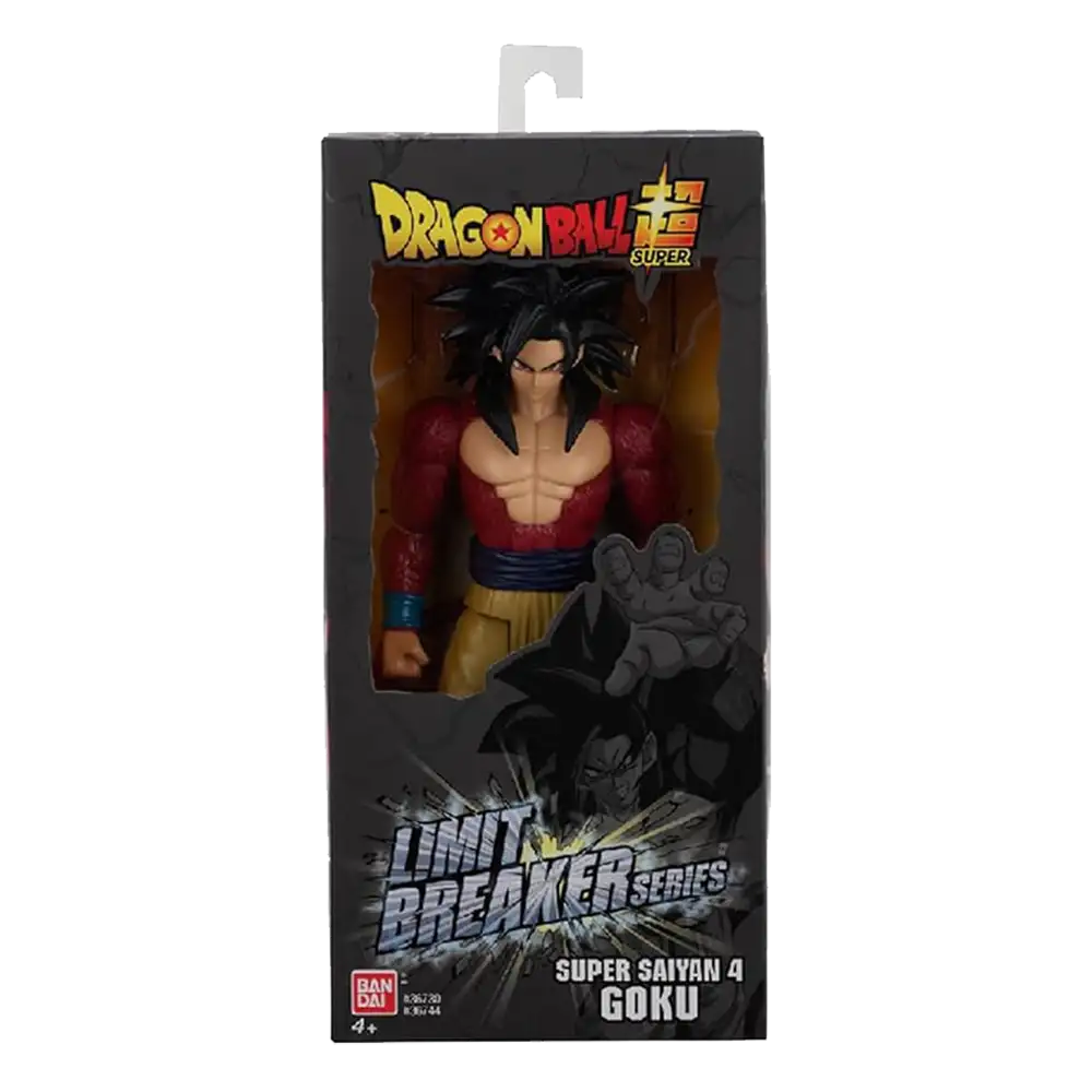 Dragon Ball Z figura Limit Breaker 12” Super Saiyan 4 Goku mide 30,48 cm y representa la transformación más salvaje de Dragon Ball GT. Esta figura articulada premium está diseñada para capturar toda la fuerza y esencia del personaje, siendo perfecta tanto para fans nostálgicos como para coleccionistas que buscan piezas exclusivas.